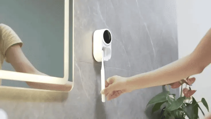 - Insert the toothbrush into the slot and wave your hand or wait for 5 min. for it to auto close.